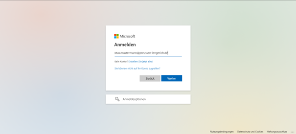 3. Geben Sie Ihre E-Mail Adresse und klicken auf „Weiter“