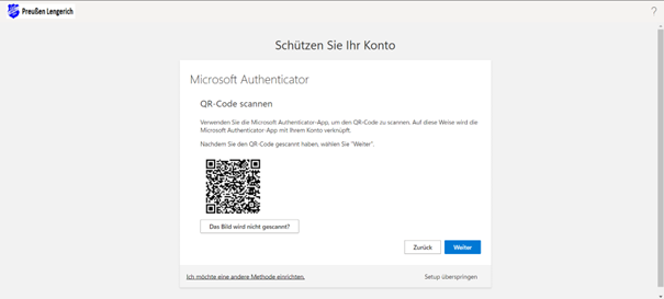 4. Es wird nun ein QR-Code angezeigt. Scannen Sie den QR-Code mit der Microsoft Authenticator App