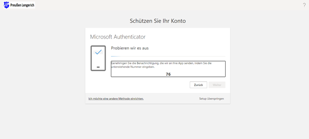 6. Nun bekommen Sie eine Aufforderung eine Zahl einzutippen in der Microsoft Authenticator App. Geben Sie die 2 Zahlen ein, welche Ihnen angezeigt werden.