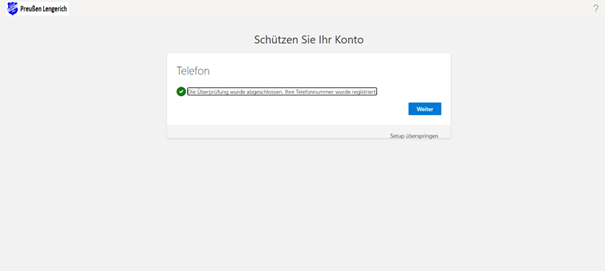 5. Die Methode Telefon ist erfolgreich eingerichtet. Klicken Sie auf „Weiter“ und anschließend auf „Fertig“