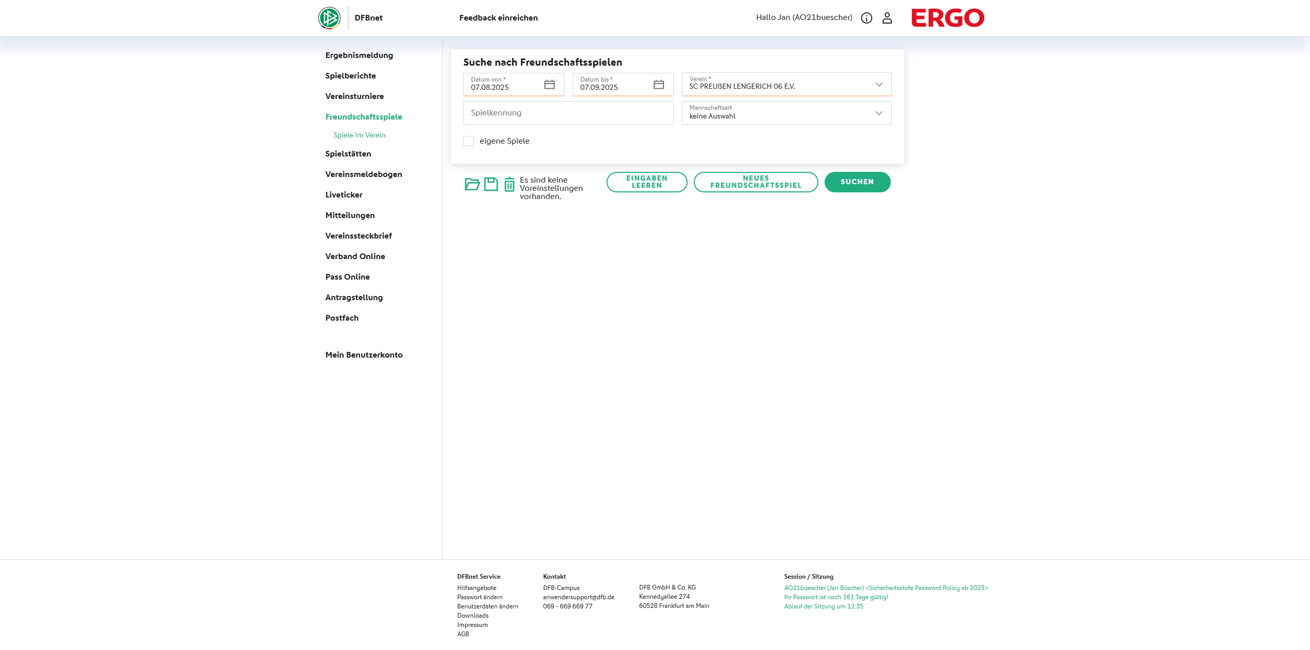 2. Gehe auf "Freundschaftsspiele" -> "Spiele im Verein"