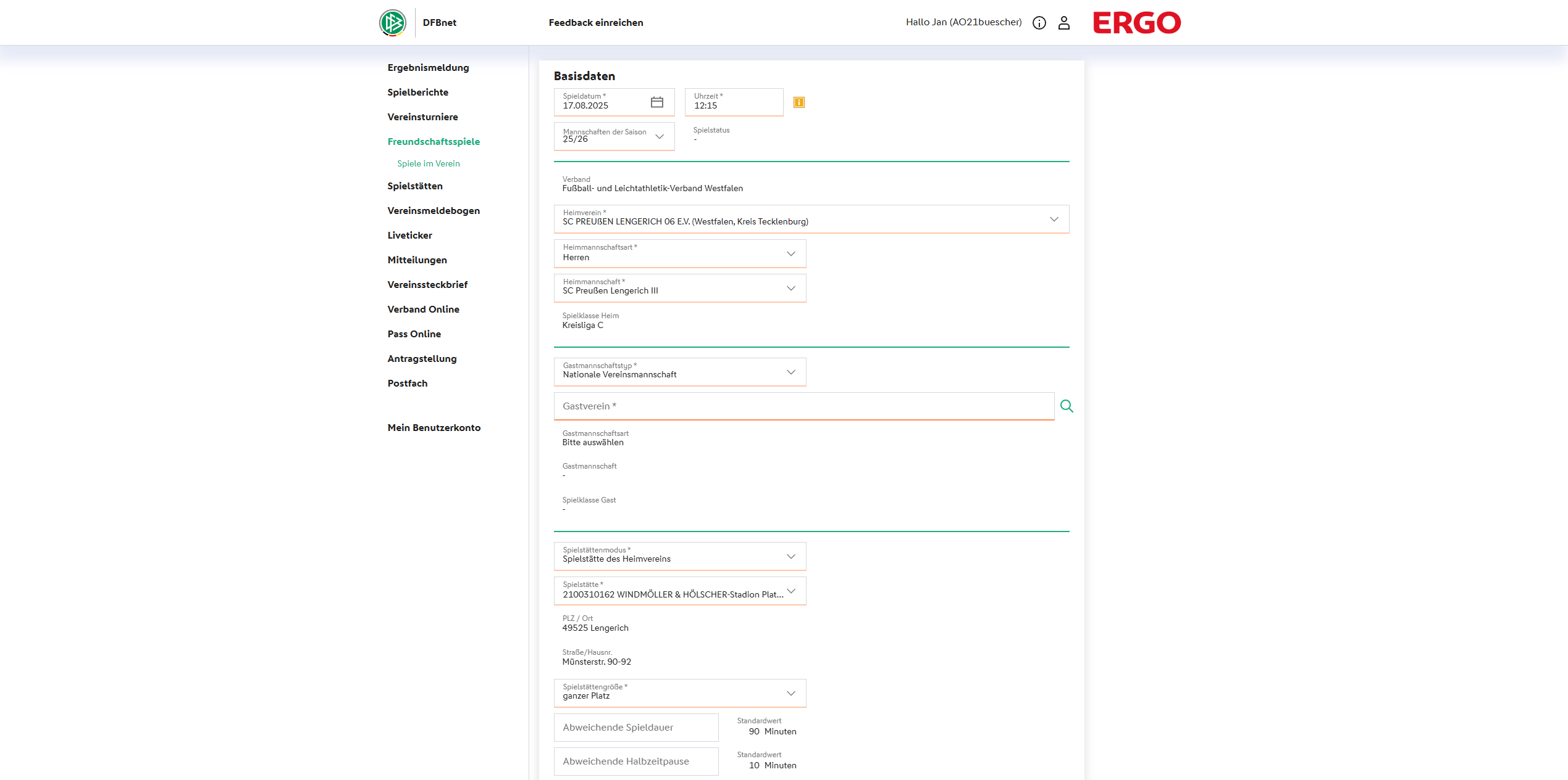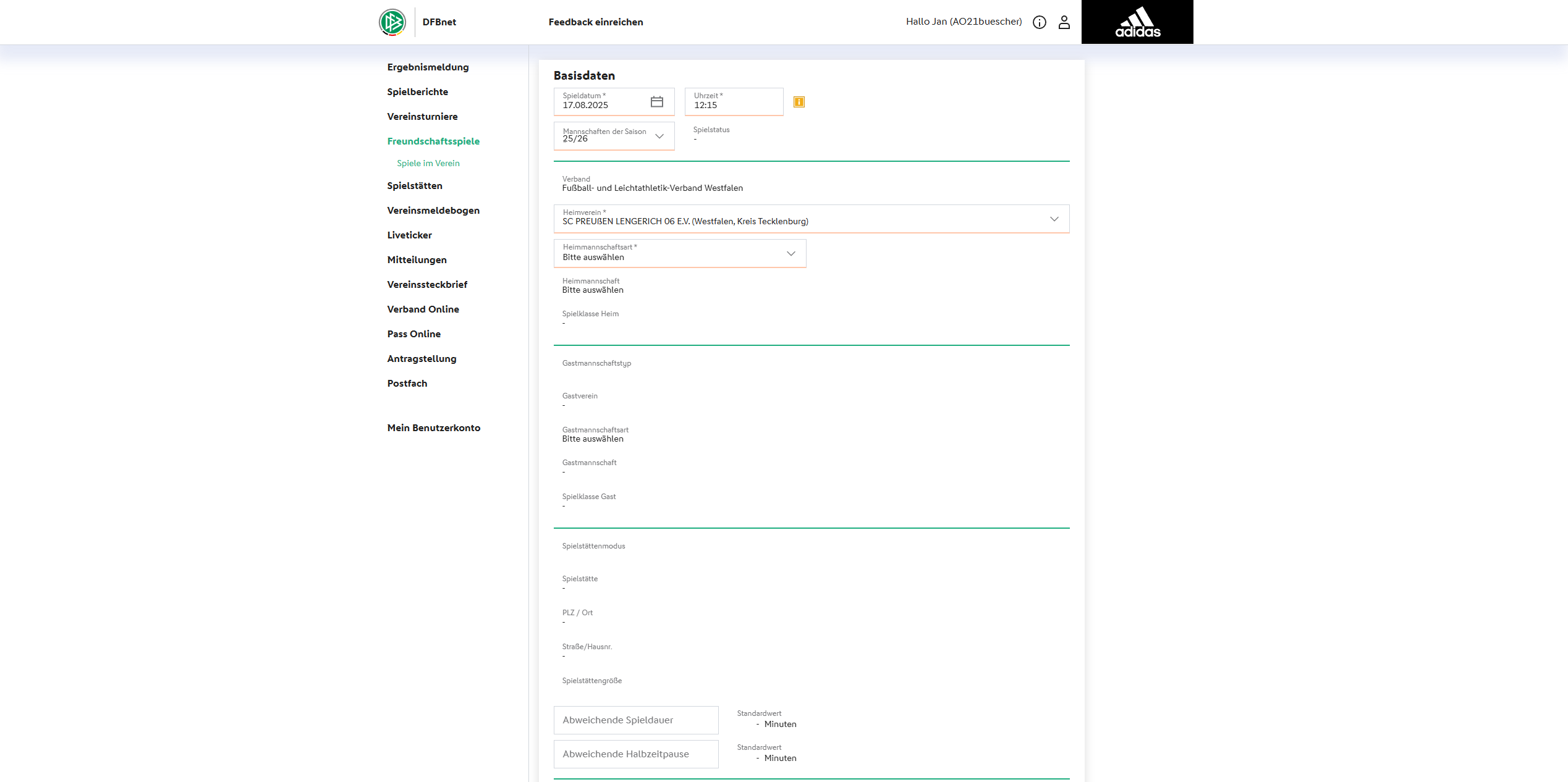 4. Trage das Datum und die Anstoßzeit ein. Beim Saisonwechsel muss auch ggf. die Saison geändert werden.