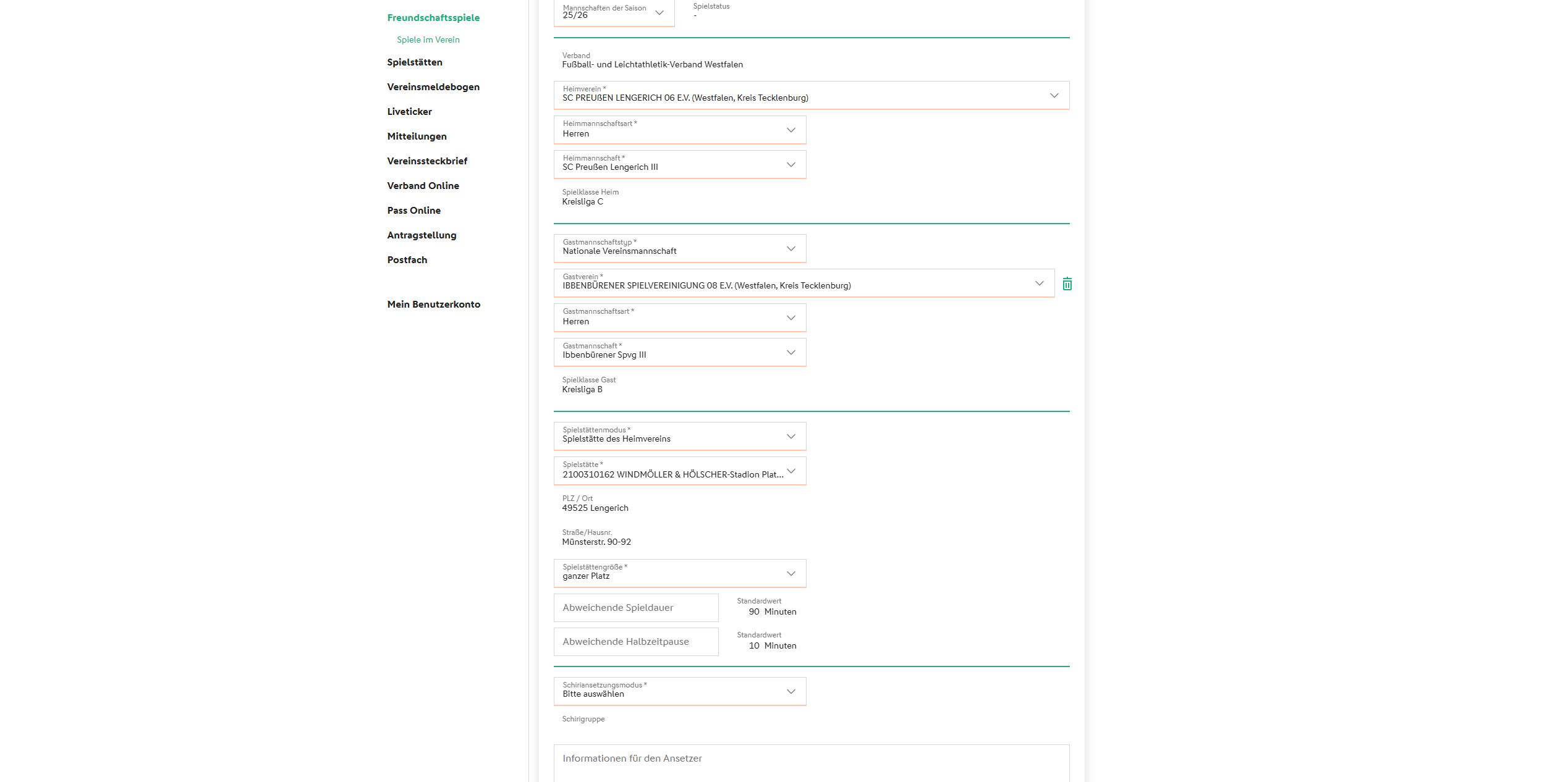 6. Nun kann man nach dem Gegner suchen. Am Besten nur Schlagwörter eingeben. Beispiel: SC Preußen Lengerich. Suche nach Lengerich. Anschließend wenn man den richtigen Verein ausgewählt hat, wie bei der Heimmannschaft die Art und dann die Mannschaft auswählen.