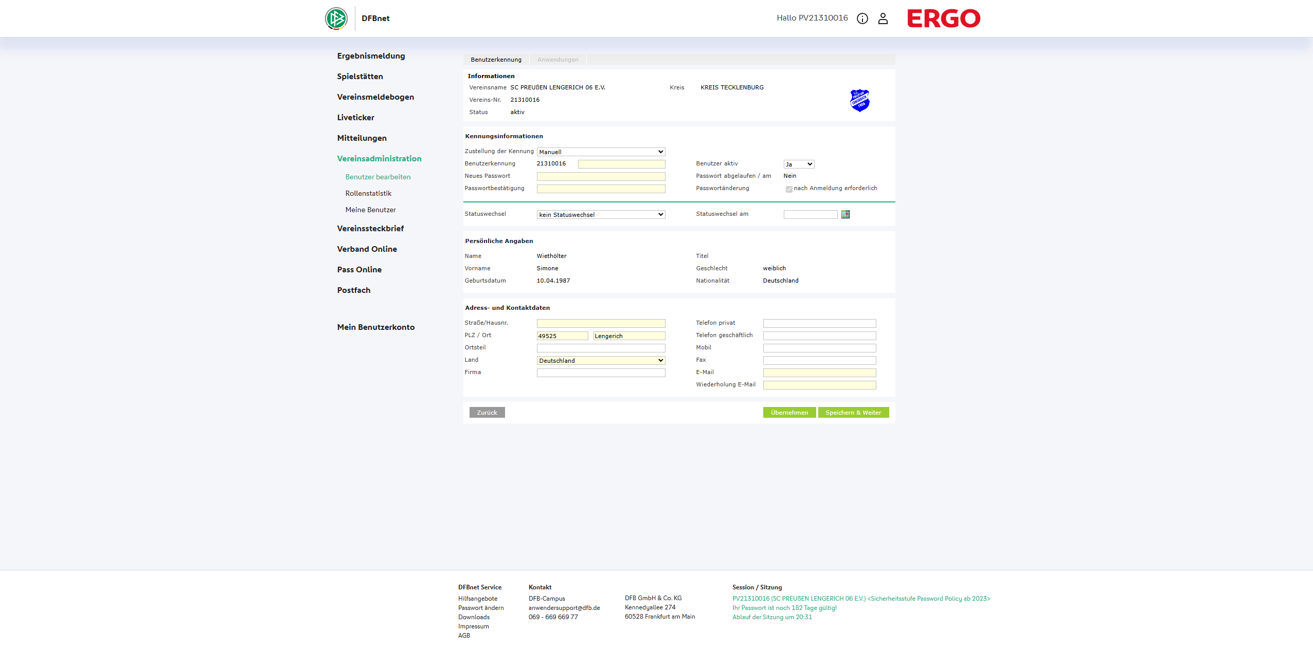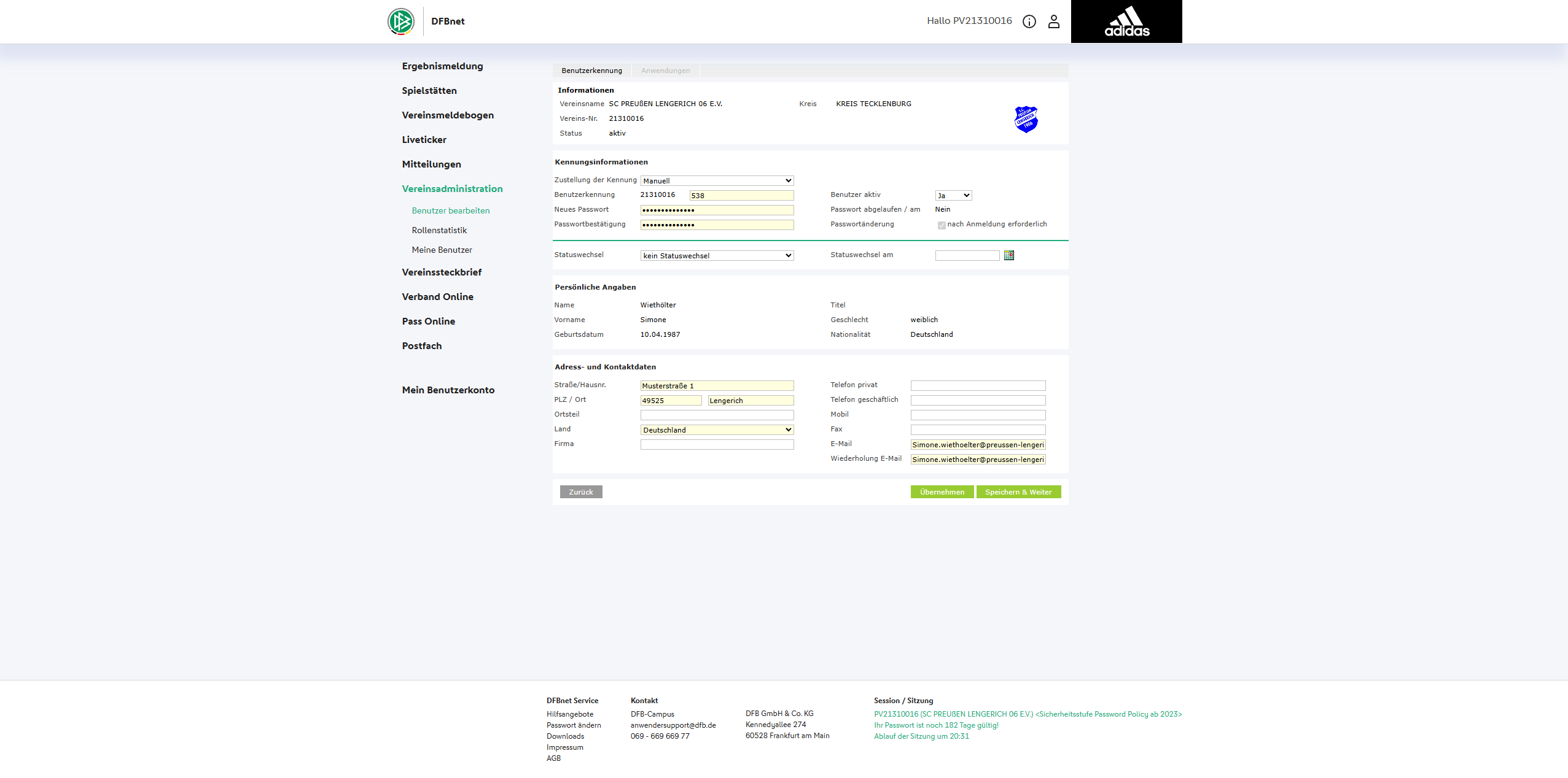 Adresse: Am besten lässt man sich ein Foto vom Ausweis schicken. Zu Not die Vereinsanschrift nehmen.