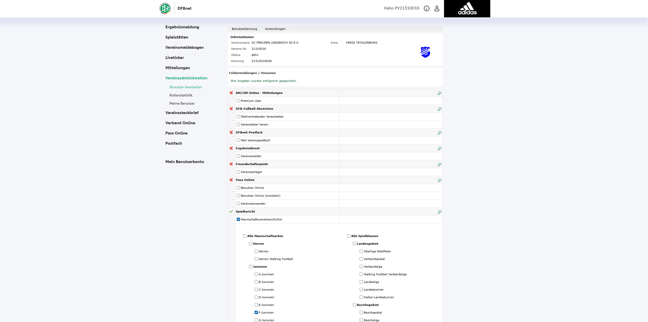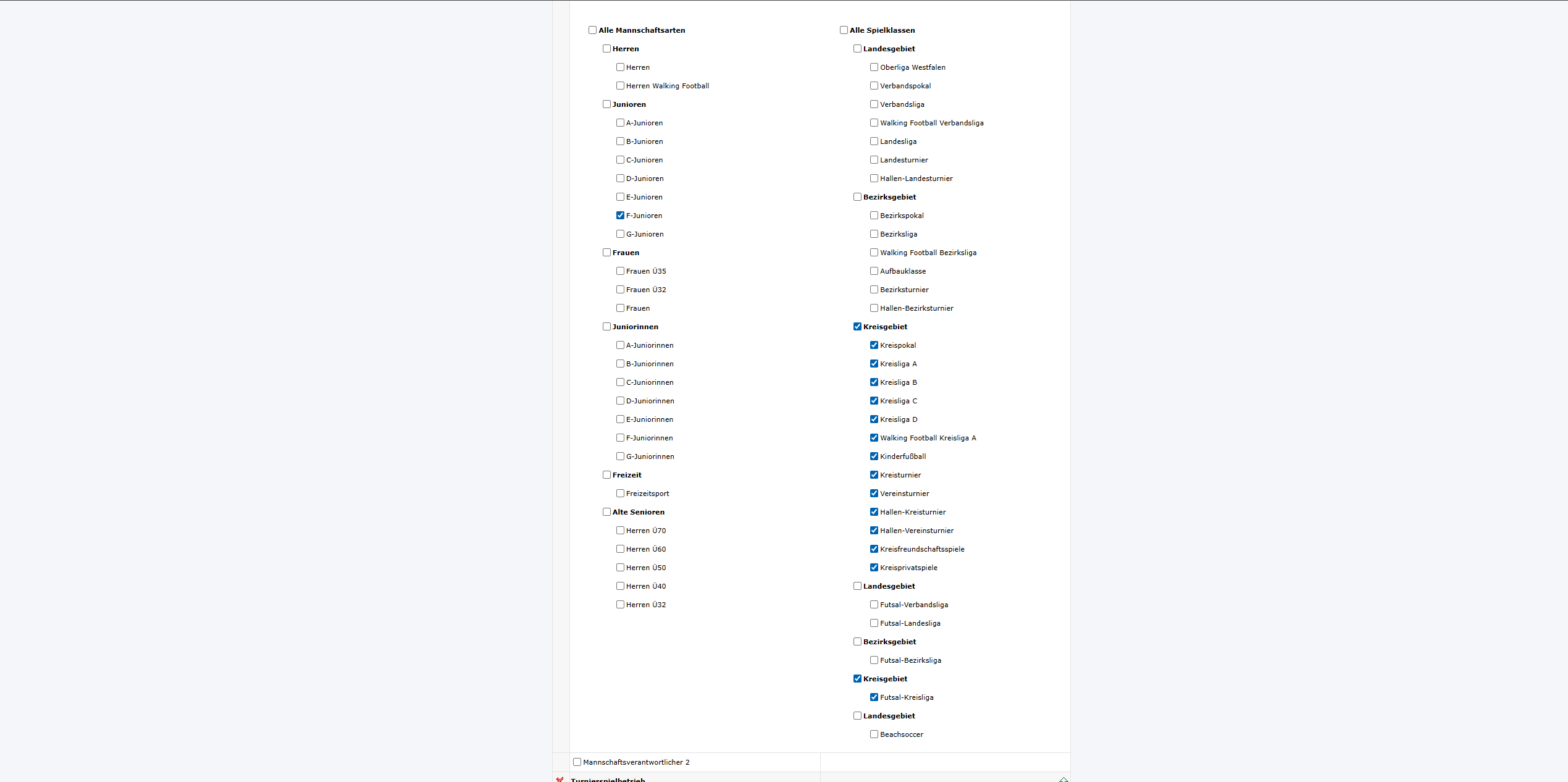 7. Nun muss man "Mannschaftsverantwortlicher" auswählen. Danach die Altersklasse. Wichtig ist, ab F-Jugend wird Kinderfußball benötigt. Darüber bitte die Spielklasse beachten. D-Jugend Staffel 1 bis 6 laufen über die Kreisliga B. Die Berechtigungen sollen so schlank wie möglich laufen, dennoch kann man es ab D-Jugend abwärts nicht weit einschränken. Pokal usw. brauchen Trainer ab der zweiten Mannschaft nicht.