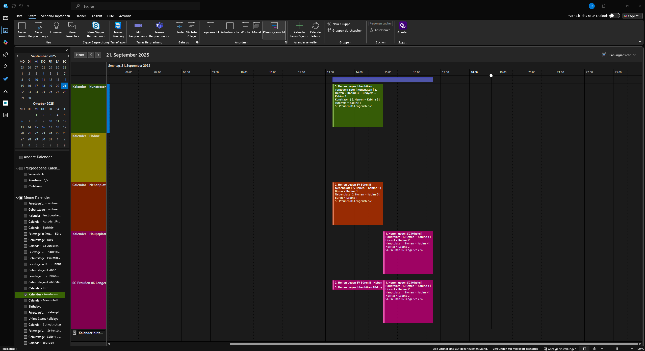 Informationen: Hierfür benötigst du die entsprechenden Rechte in Outlook. Standardmäßig haben diese Berechtigungen nur der Leiter und Stellvertreter Spielbetrieb.
