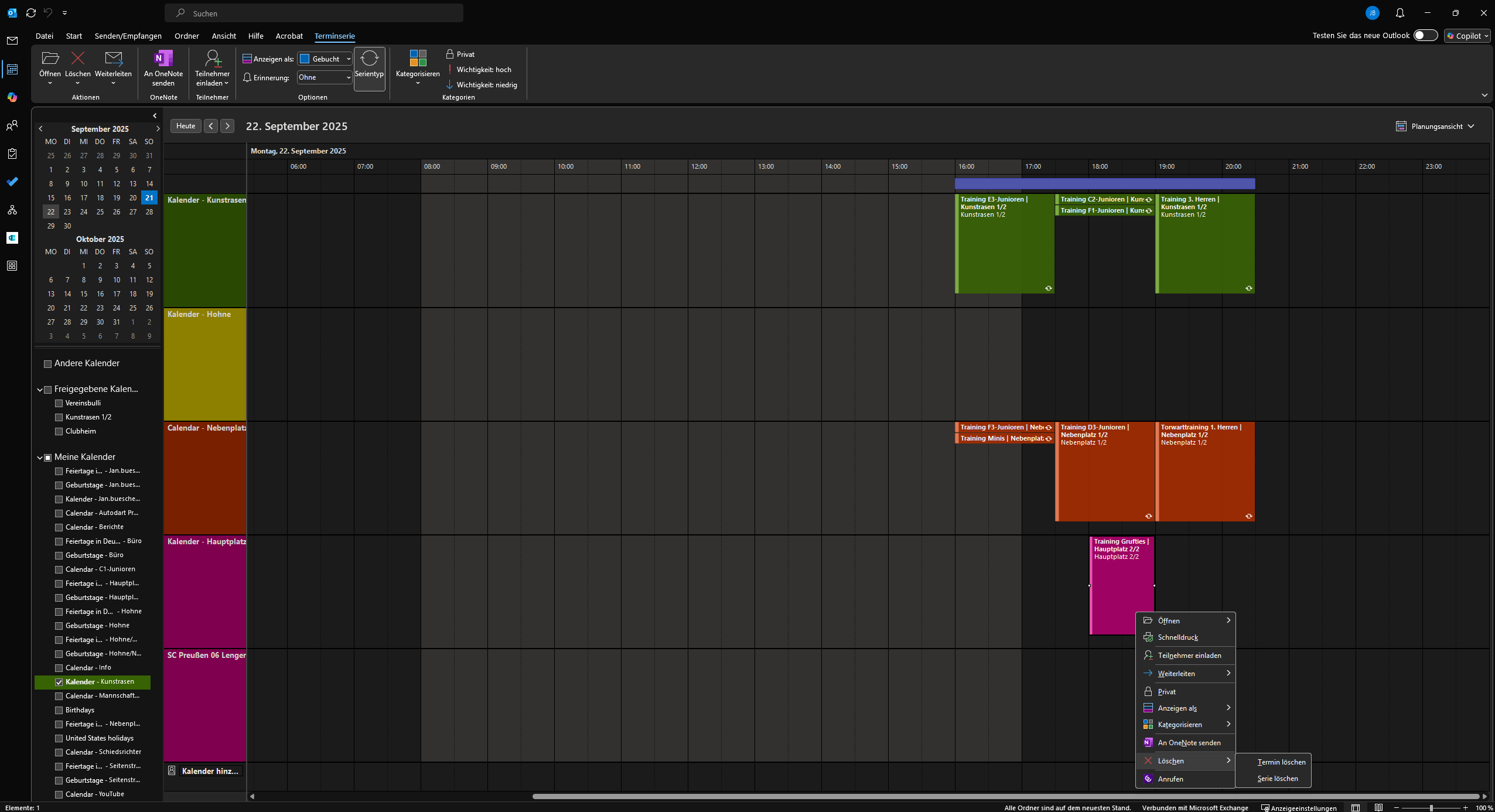 3. Wähle an dem Tag das Training aus, welches ausfällt und klicke Rechtsklick auf den Termin.