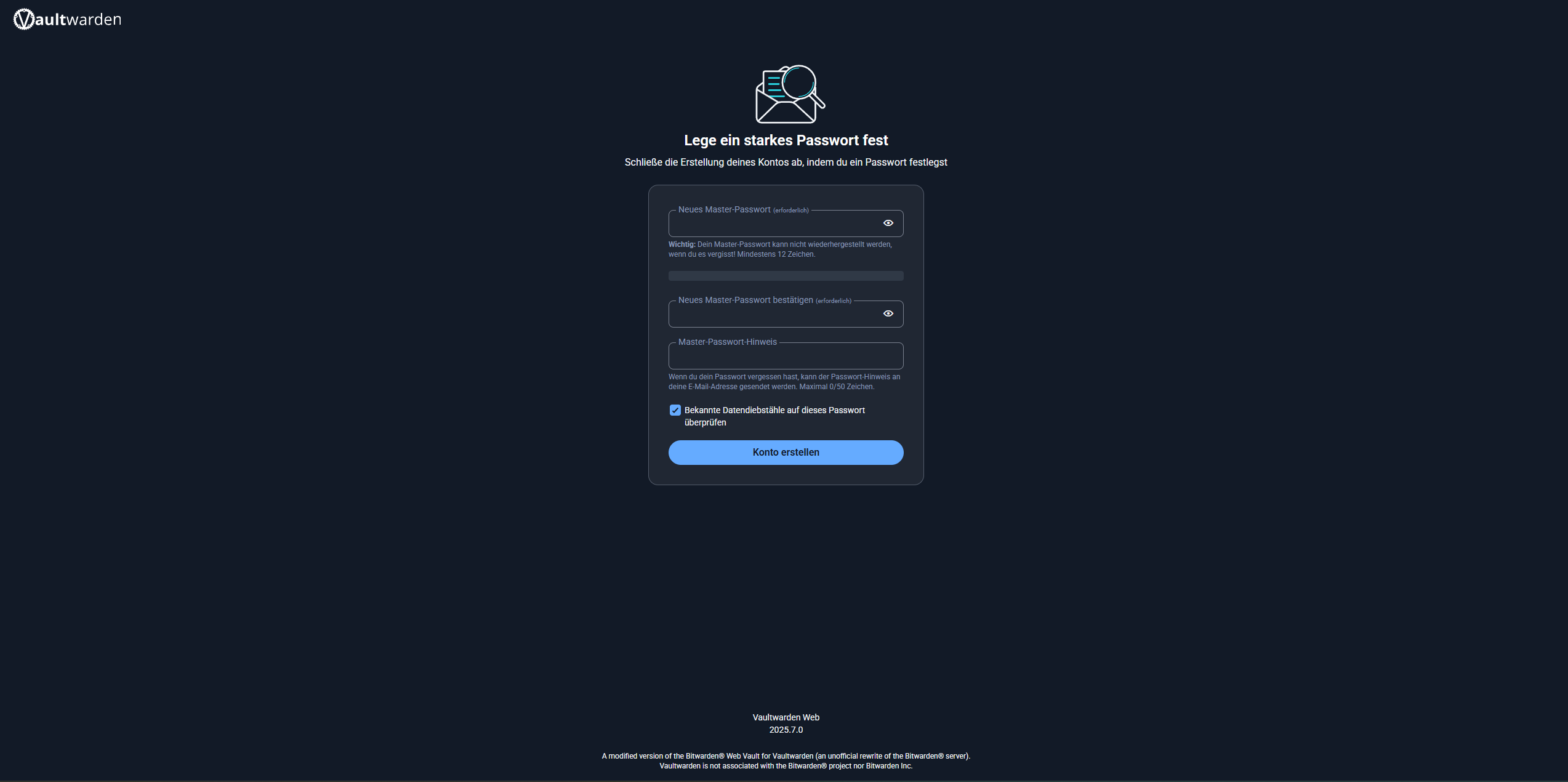 5. Vergebe ein sicheres Kennwort und wiederhole dieses. Du kannst wenn du möchtest noch ein Kennworthinweis eingeben. Dann auf "Konto erstellen"