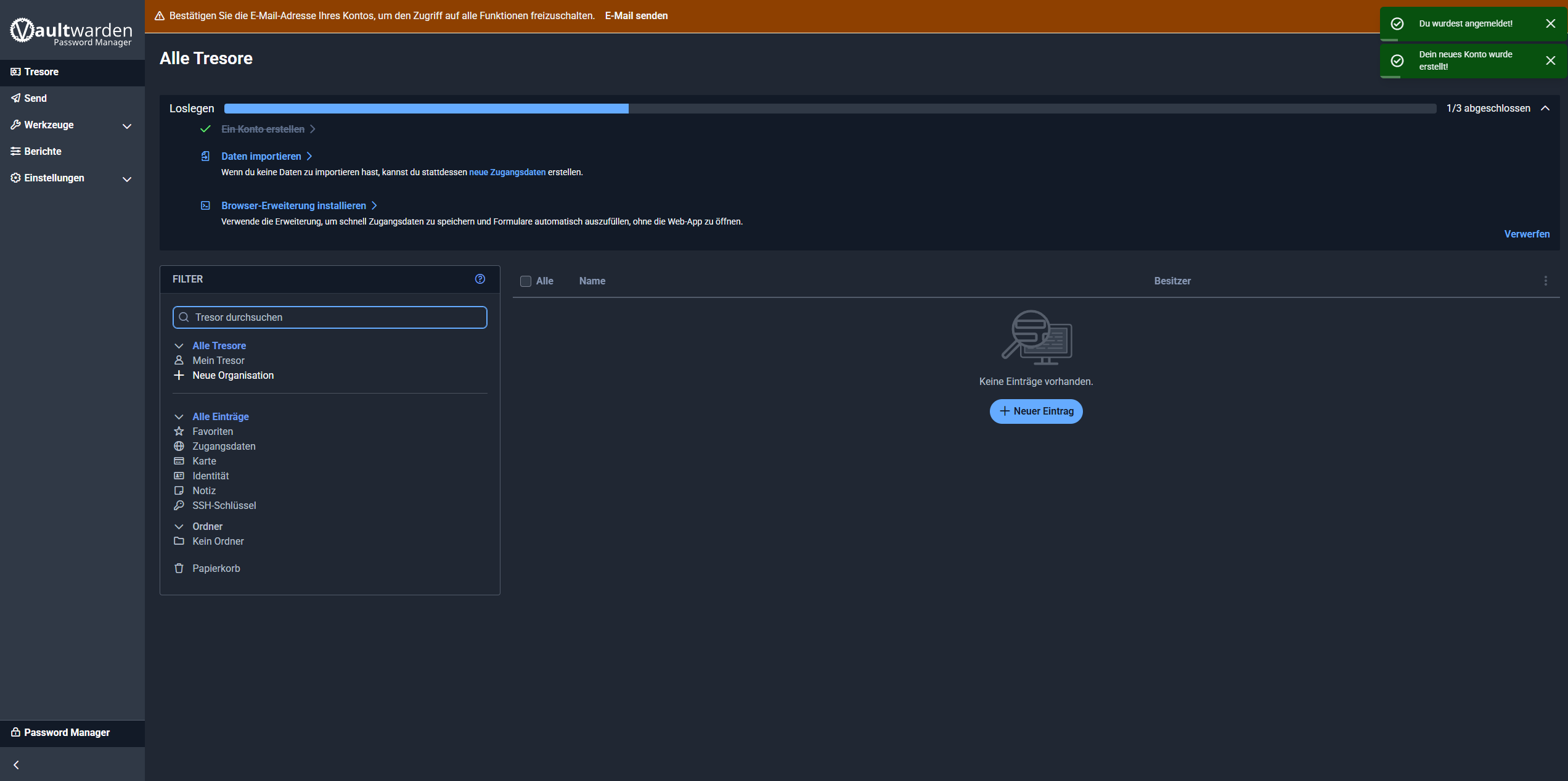 7. Falls du die E-Mail nicht im Posteingang hast, überprüfe den Spam Ordner. Klicke auf "Verify Email Adress Now". Gehe zurück zum Passworttresor